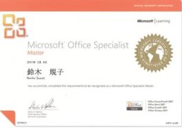 Microsoft Office Specialist Master ・Word2007 ・Excel2007 ・PowerPoint2007 ・Access2007 Microsoft Office Specialist ・Word2019 (Specialist) ・Excel2019 (Specialist) |