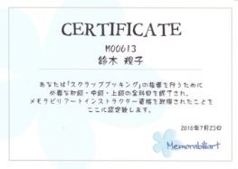 メモラビリアートインストラクター メモラビリアートのスクラップブッキングを、指導することが出来る資格です。 |